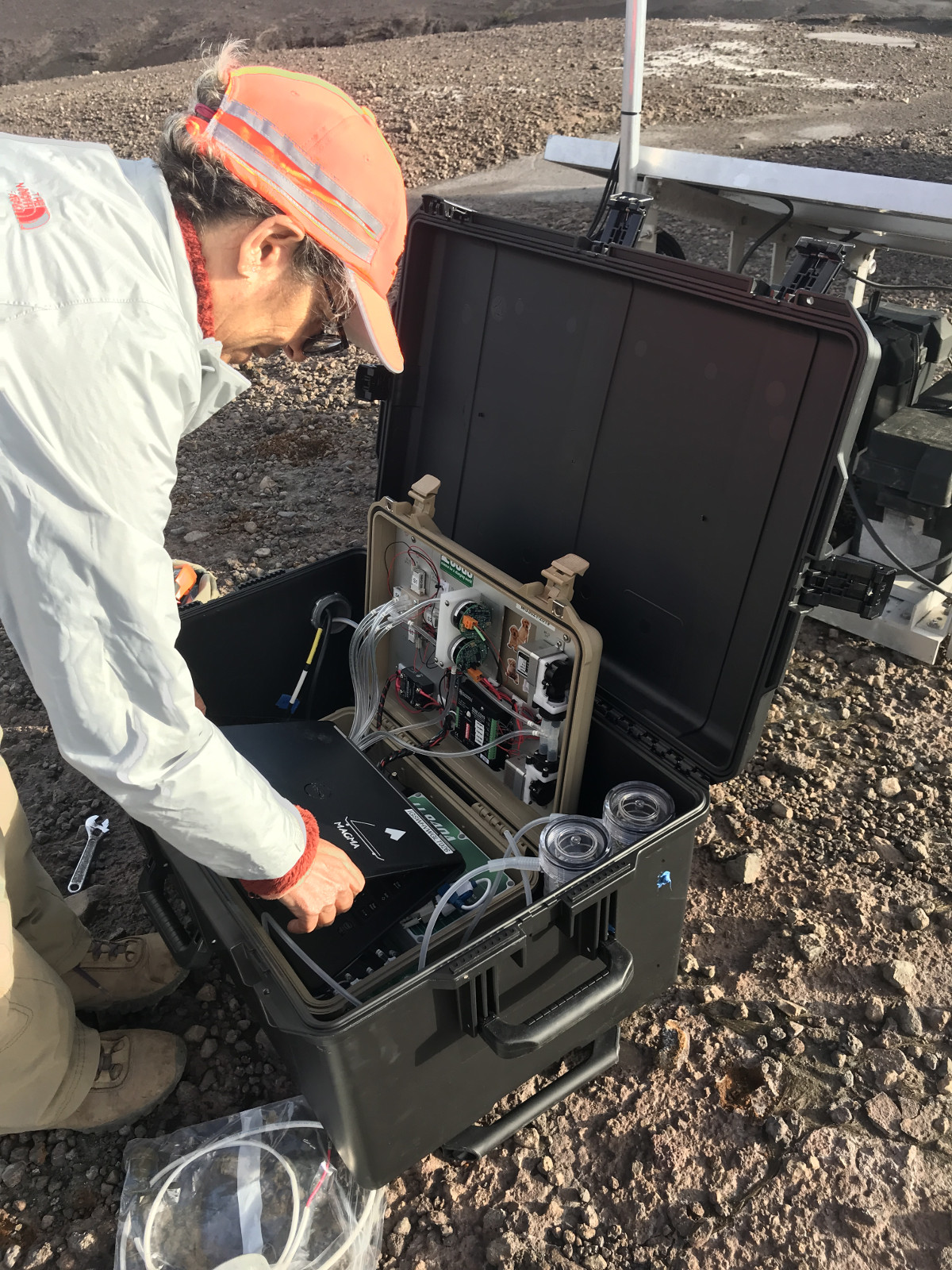 HAWAIʻI VOLCANOES NATIONAL PARK - USGS Hawaiian Volcano Observatory field crews recently established a new MultiGAS volcanic gas monitoring station at the summit of Kīlauea Volcano.
