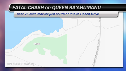 PUAKO, Hawaii – There was fatal accident on Queen Kaʻahumanu Highway on Wednesday, near the 71-mile marker just South of Puako Beach Drive.