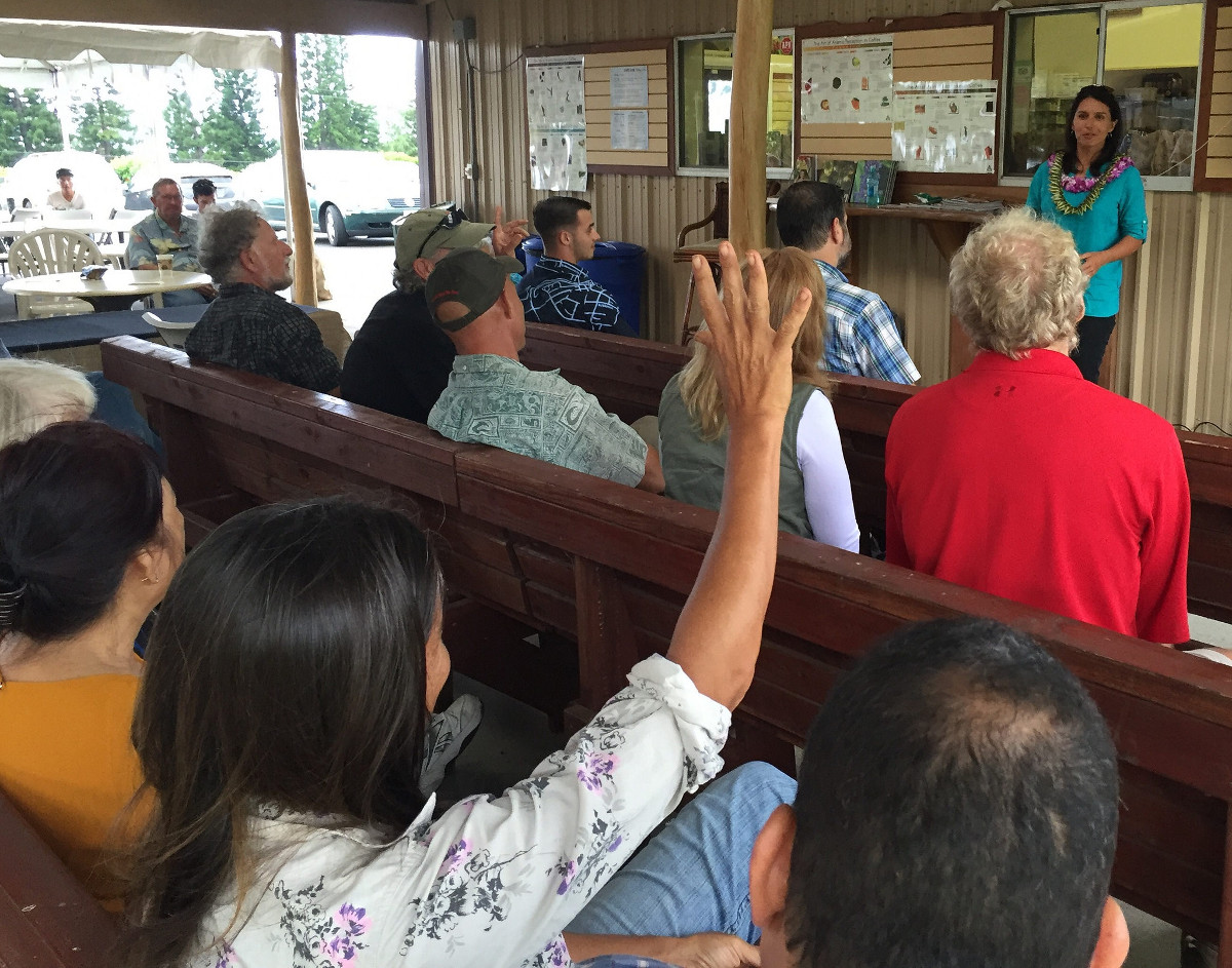 (courtesy Rep. Gabbard) “Talk Story with Tulsi” at Kaʻu Coffee Mill and Macadamia Nut Farm
