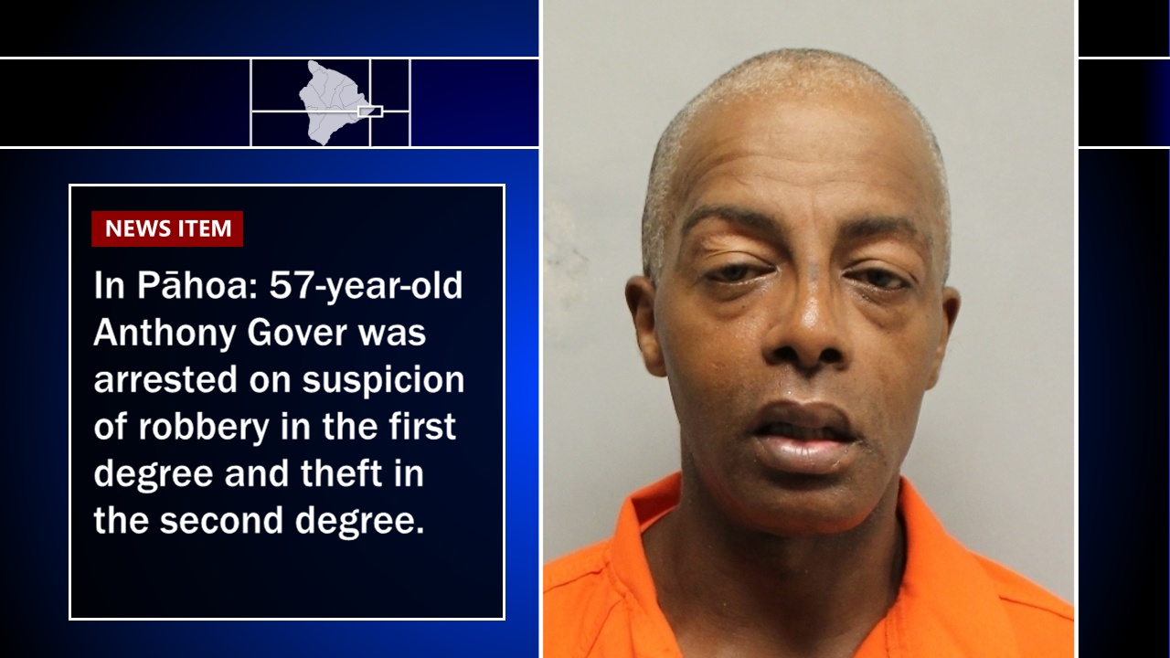 Gover is currently being held in the Hilo cellblock on suspicion of robbery in the first degree and theft in the second degree while Detectives with the Area I Criminal Investigations Section continue the investigation, police say.