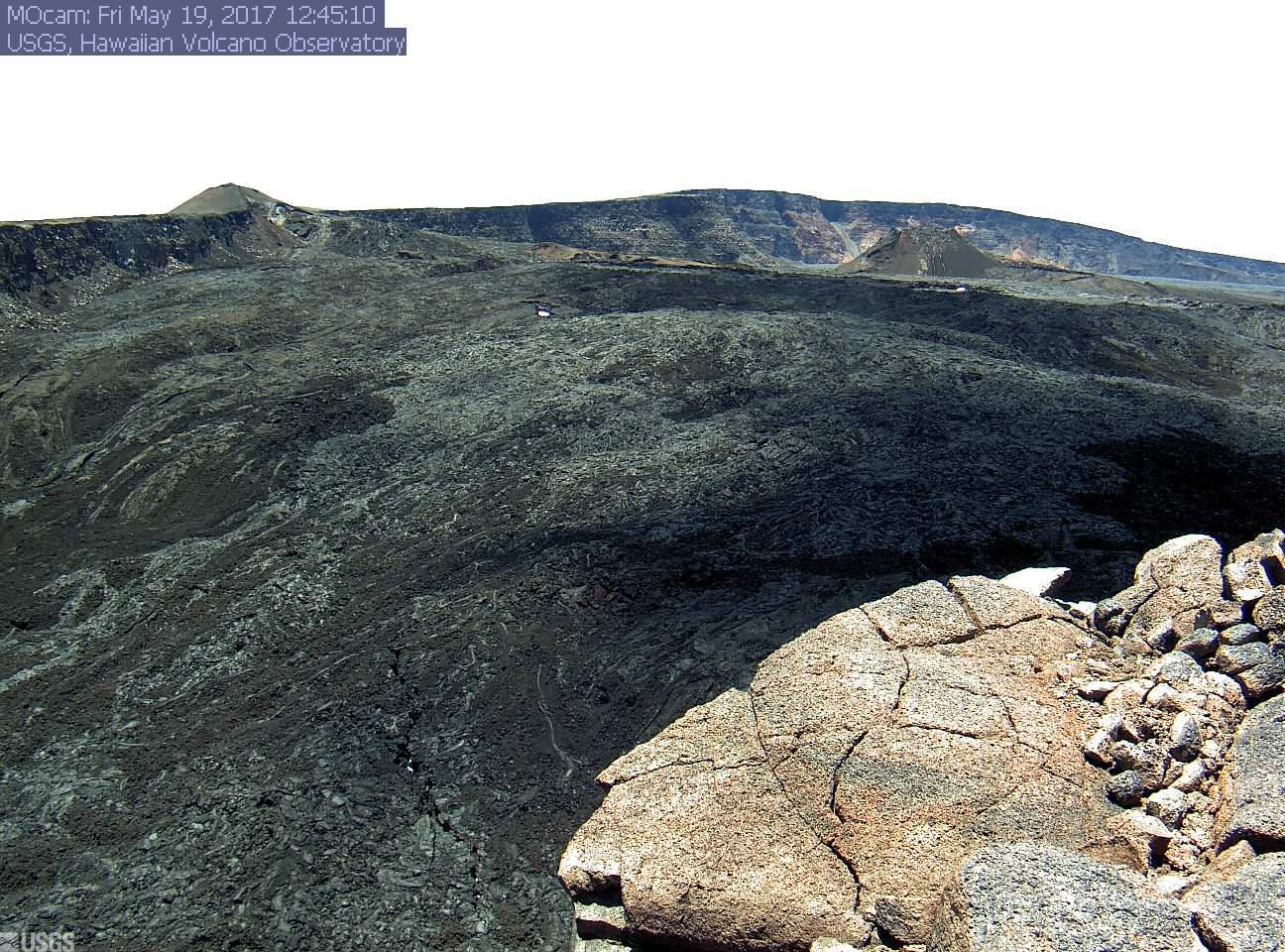 USGS scientists hiked to the summit of Mauna Loa on May 9, “where they checked on HVO’s monitoring instruments and realigned an antenna that allows webcam images of the volcano’s summit caldera”, scientists wrote.