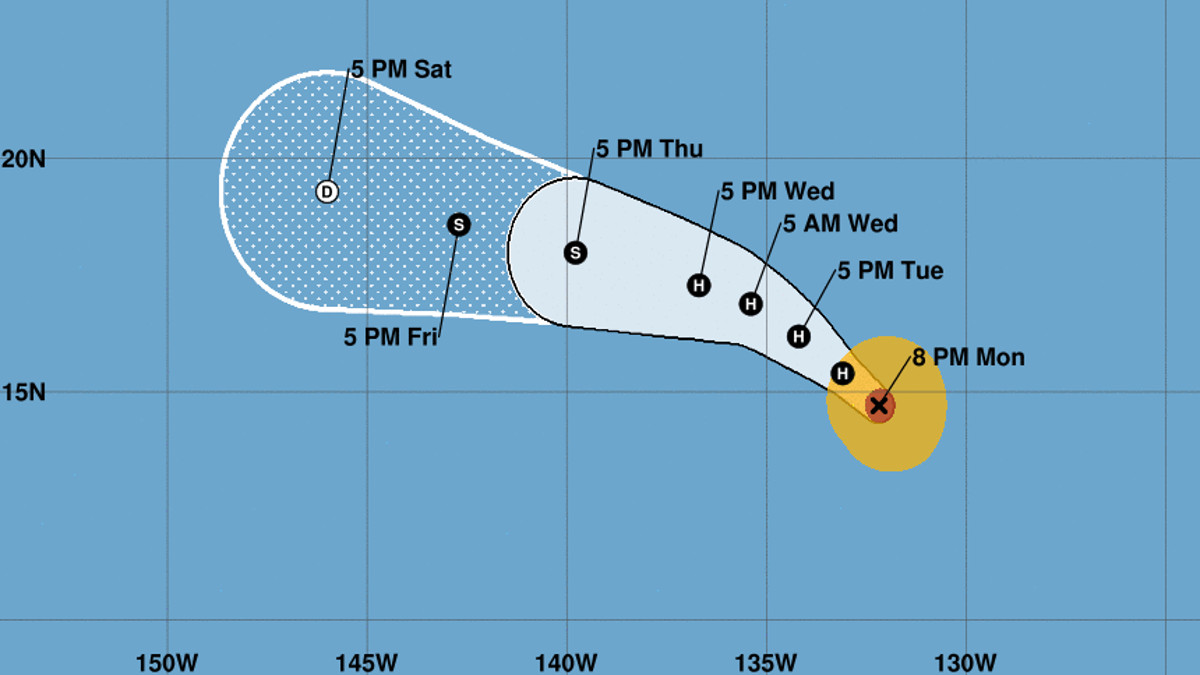 “An east swell from Fernanda may reach the Hawaii coastal waters as early as tonight,” the NWS says, “then build through the week. The size of this swell will be dependent on the track and intensity of Fernanda.”