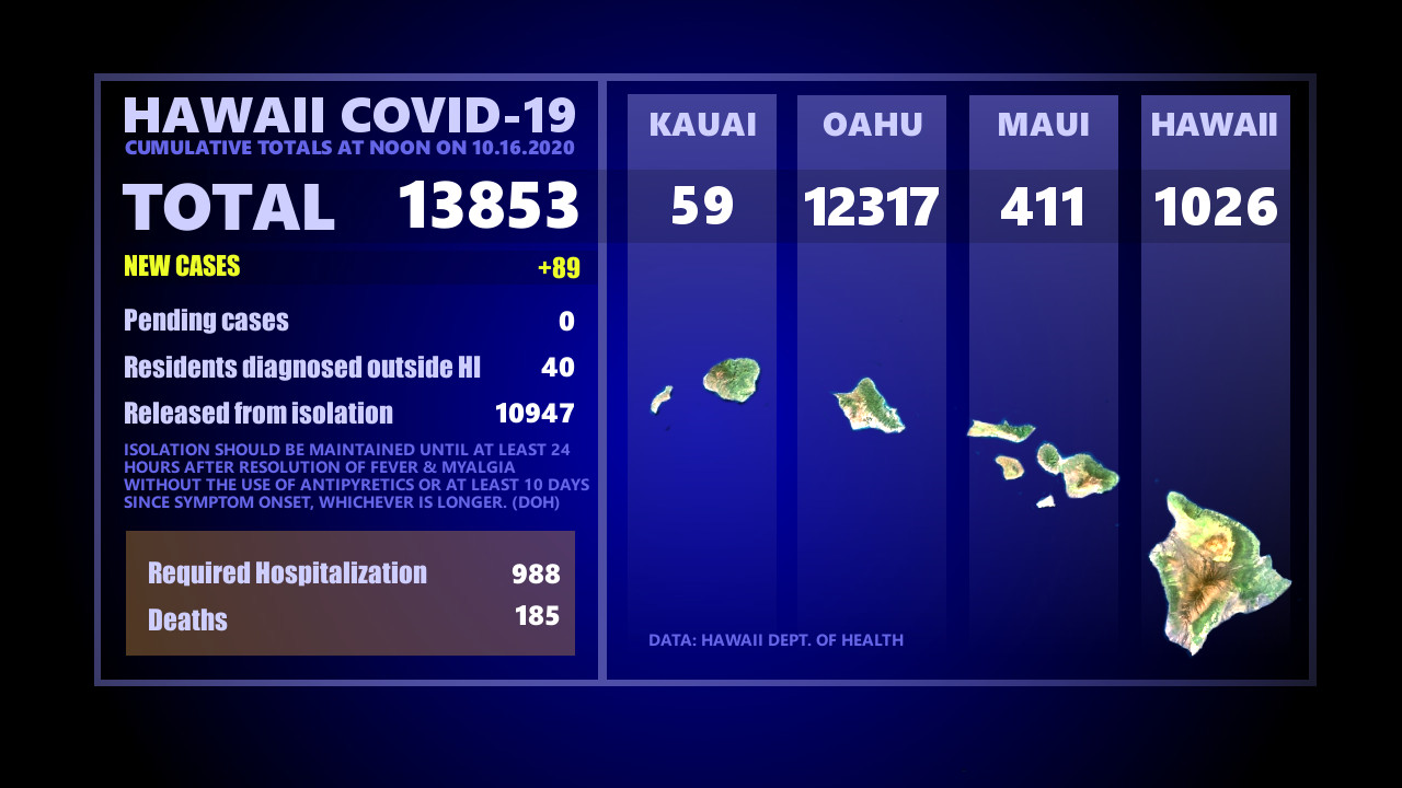 UPDATE – (2 p.m.) – There were 89 newly reported cases of COVID-19 statewide as of noon on Friday, the Hawaiʻi Department of Health reported. One new death was also reported.