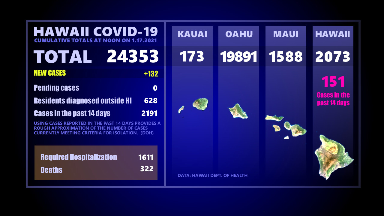 HAWAIʻI ISLAND - Of the 132 new cases of COVID-19 reported statewide at noon on Sunday, seven (7) cases were identified on Hawaiʻi island.