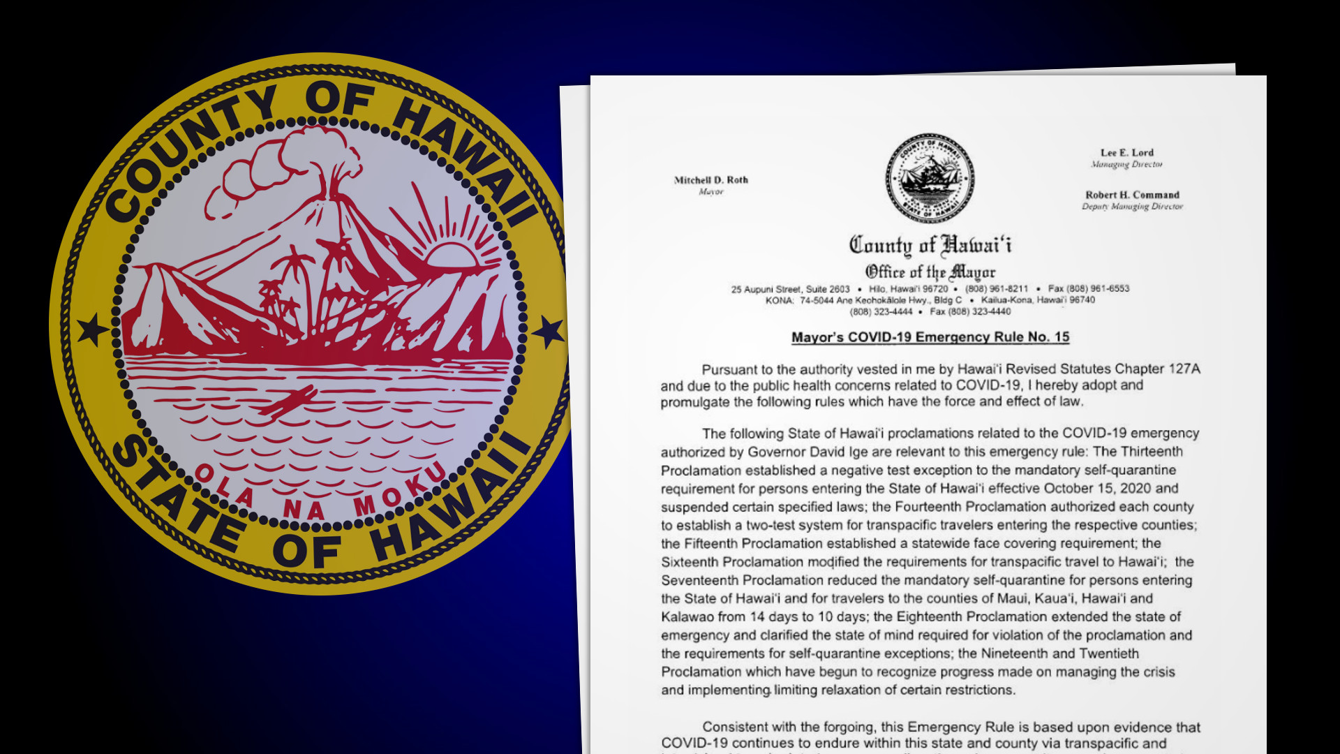 (BIVN) – The County of Hawaiʻi has updated its COVID-19 rules, after Mayor Mitch Roth’s Emergency Rule No. 15 went into effect immediately after it was signed on May 29th.