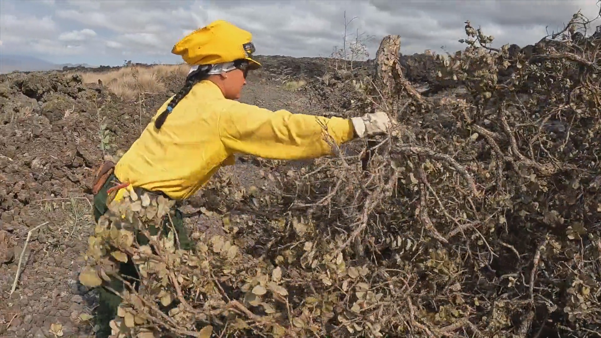 WAIKOLOA, Hawaiʻi - After burning through invasive fountain grass, the 16,400-acre fire has now moved into some dryland forest.