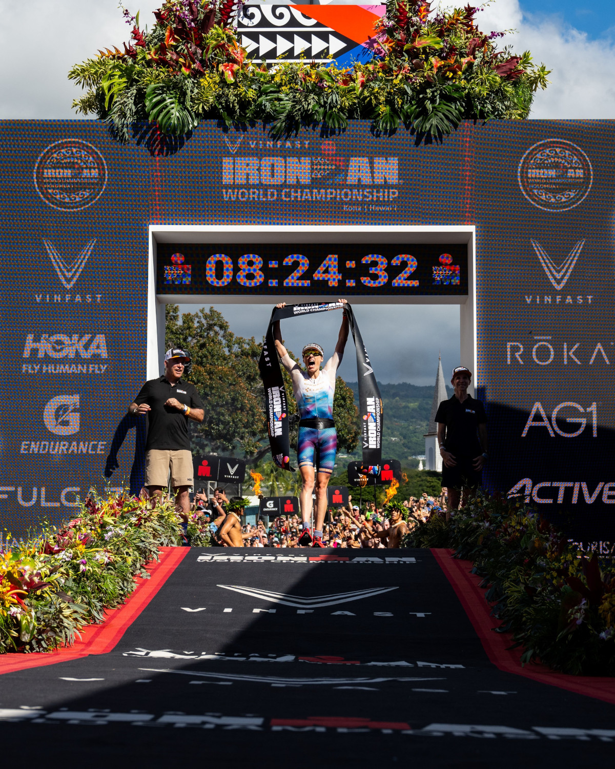 Charles-Barclay’s storybook victory started in the water with her event best 49:36 swim. She held her own at the front of the race for the entirety of her 4:32:29 bike and ran a 2:57:37 marathon to put together an overall time of 8:24:31, setting a new women’s course best time at the IRONMAN World Championship.