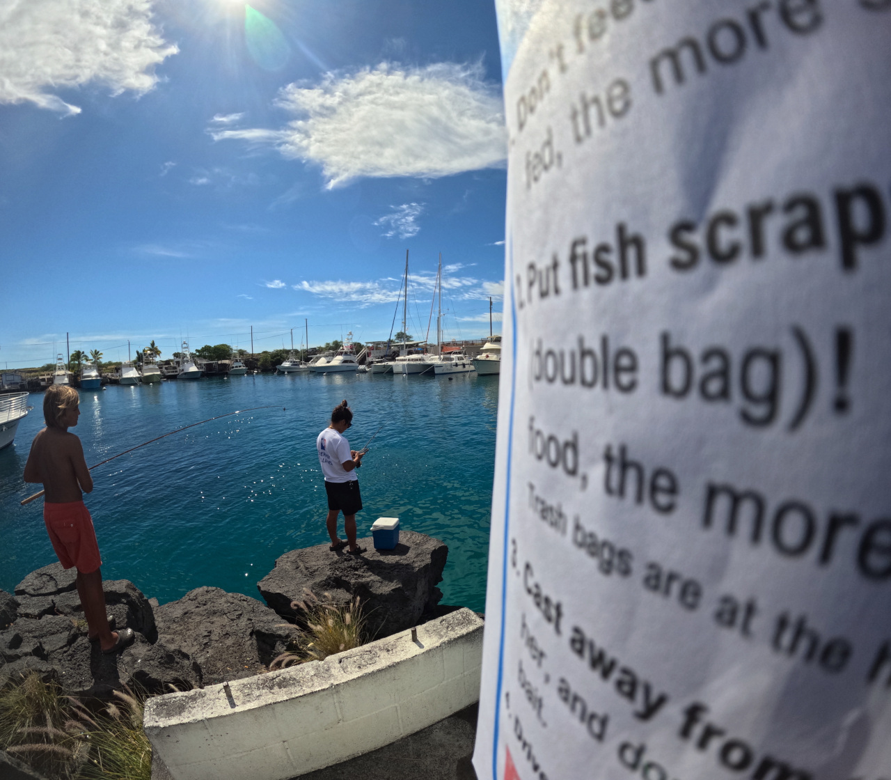 Since then, the DLNR Division of Aquatic Resources (DAR), the DLNR Division of Boating and Ocean Recreation (DOBOR), and The Marine Mammal Center have been conducting outreach at the harbor, posting signs and speaking to boaters and fishers.