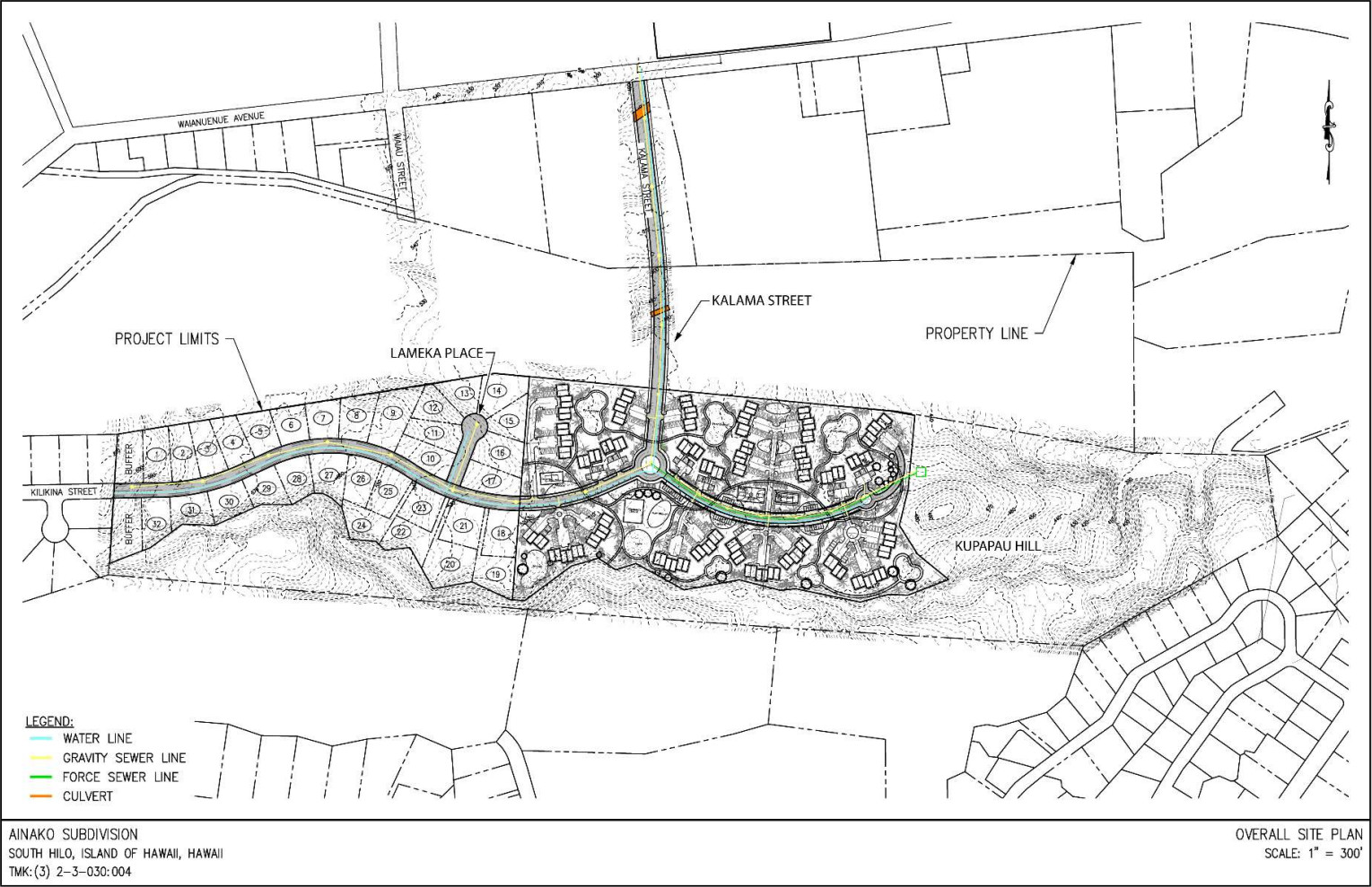 The future ʻĀinakō Subdivision Housing Project would consist of 144 single-family and multi-family housing units, constructed in two phases. Phase 1 would consist of 82 townhomes and 28 flats, and Phase 2 would include up to 34 single-family units.