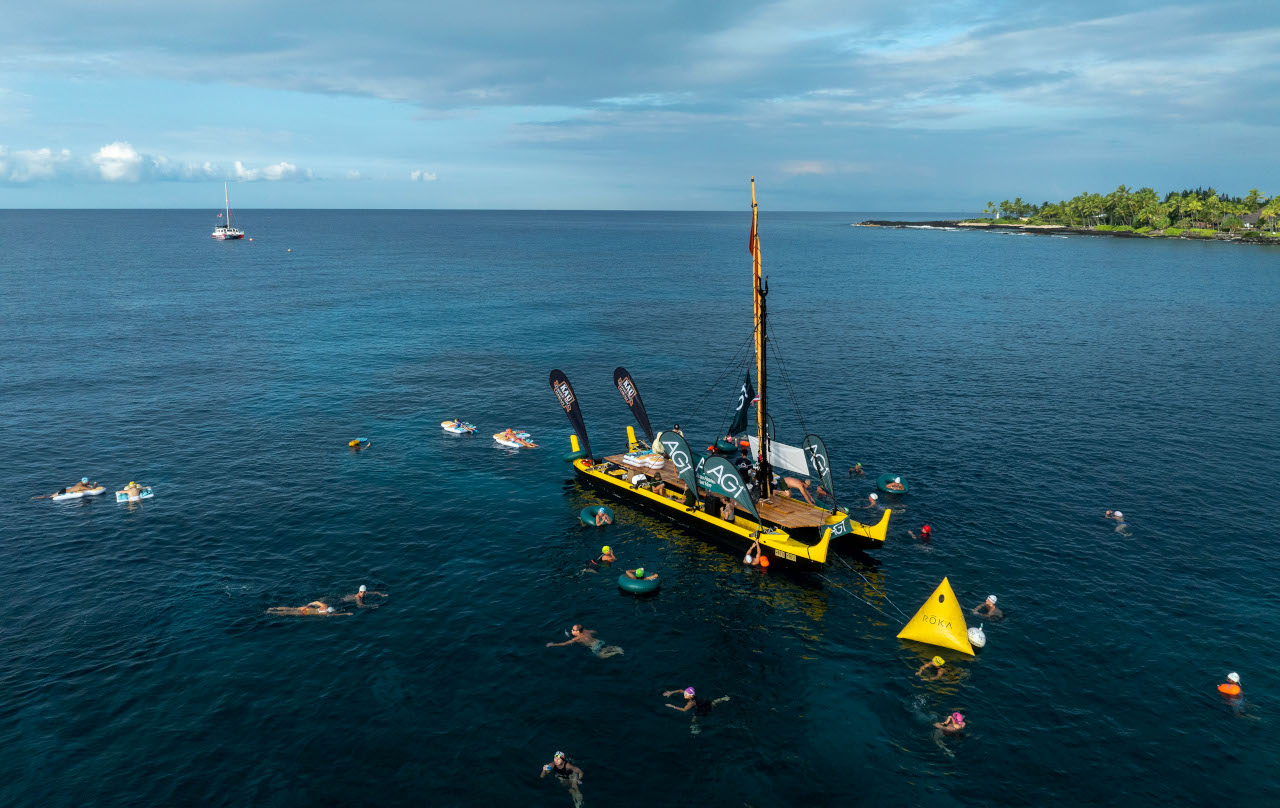 Triathletes swim in the course and to the AG! Coffee Boat in preparation for the 2025 IRONMAN Women’s World Championship on October 7, 2025 at the Kailua-Kona, Hawaii. (Photo by Donald Miralle for IRONMAN)