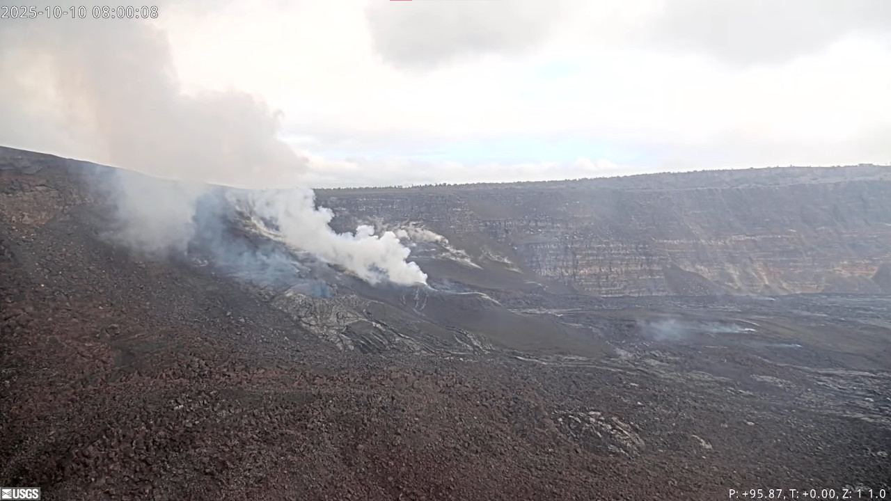 Variable weak to moderate incandescence has been visible from north and south vents in Halemaʻumaʻu overnight, and a “rhythmic pattern of seismic tremor indicates gas piston events in both vents”, the Observatory reported.