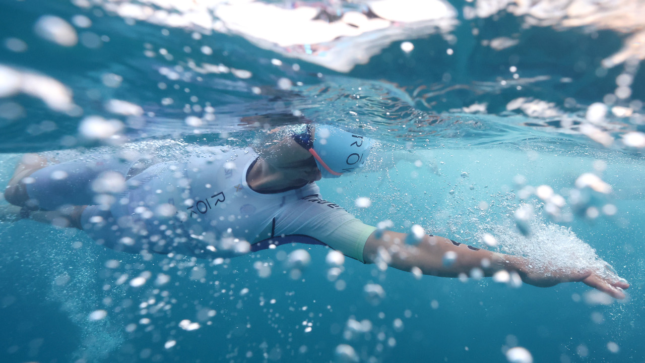 Athletes compete in the swim portion of the 2025 IRONMAN World Championship Women’s Race on October 11, 2025 in Kailua Kona, Hawaii. (Photo by Ezra Shaw/Getty Images for IRONMAN)
