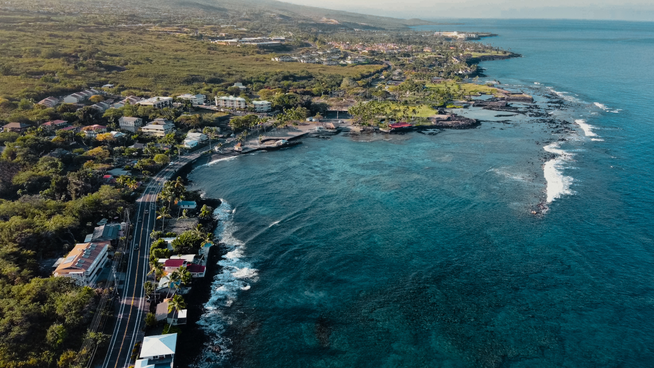 TKC: “Kahaluʻu Bay as seen from overhead. The bay is an important nursery for native corals, fish, limu, and other marine life.” (Photo by The Kohala Center)