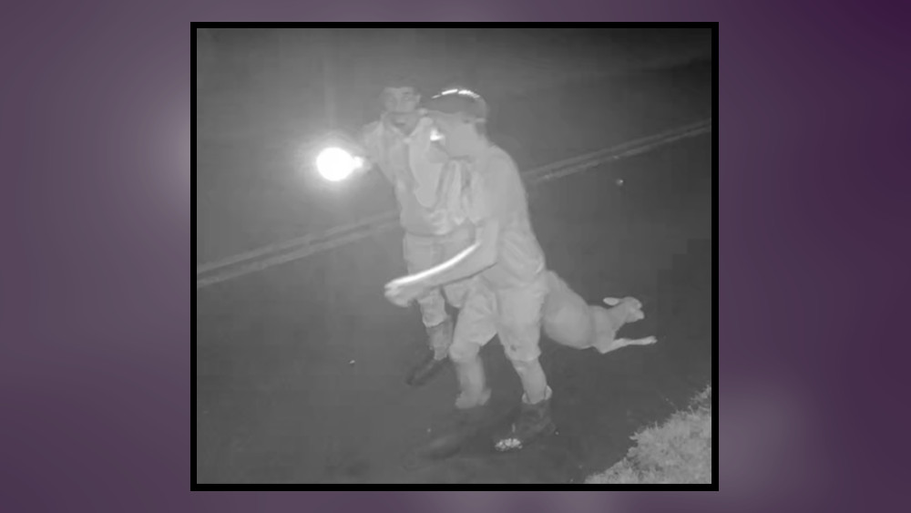 In a news release, shared with a video surveillance image showing the suspects dragging an animal at night, police wrote: