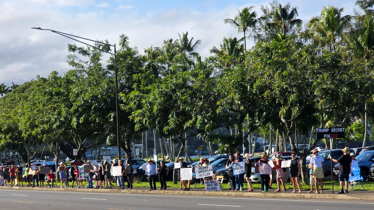 HILO, Hawaiʻi - The pop-up demonstration, held along the highway across from the King Kamehameha statue, was organized by Indivisible of East Hawaiʻi.