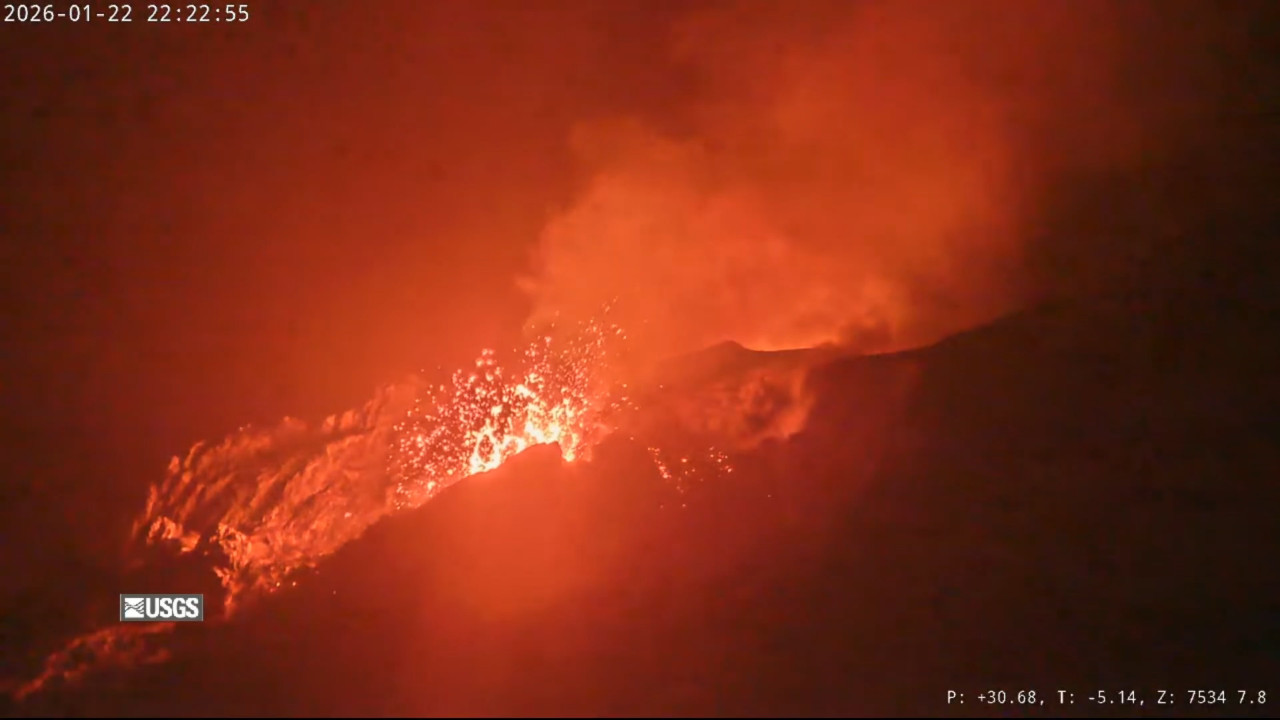 High lava fountains could begin at any moment. Scientist forecast episode 41 in the year-long summit eruption could start between today, January 23, and Sunday, January 25, based on current inflationary tilt models.
