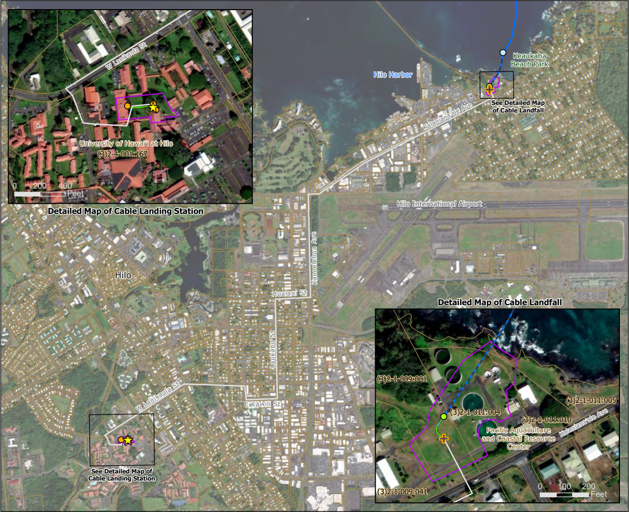 There is one cable landing site on Hawaiʻi island described in the 1,587-page document. The location is in the Keaukaha-area of Hilo, and will connect to the University of Hawaiʻi-Hilo campus off Lanikāula Street. From the draft EA: