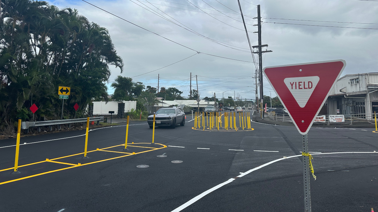 (BIVN) – There is a new roundabout in Hilo, located at the previous T-intersection at Kawili and Manono streets.