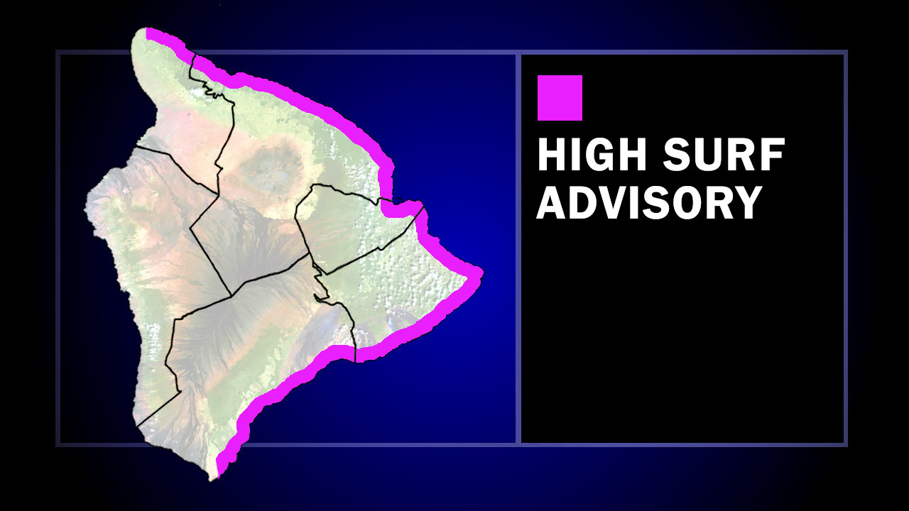 ISLAND OF HAWAIʻI - Surf heights of 8 to 12 feet will be possible along east-facing shores of Hawaiʻi island until Thursday evening.