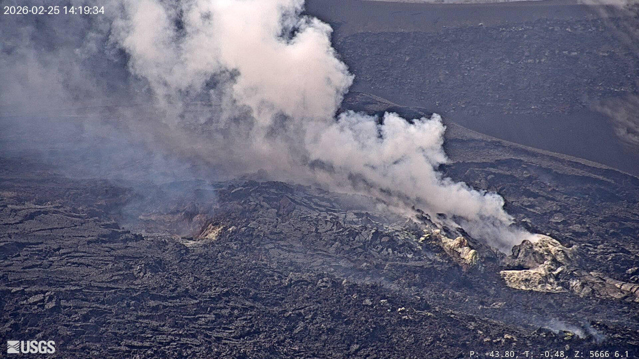 USGS webcam view of the inactive vents within Halemaʻumaʻu crater at the summit of Kīlauea on Wednesday