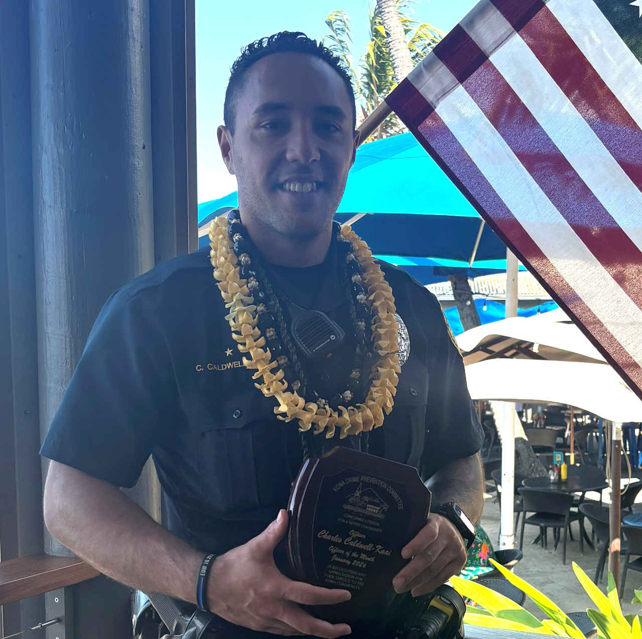 KCPC recognized Kona Patrol Officer Charles Caldwell-Kaai for his investigative work and compassionate response during two unrelated incidents in August 2025.