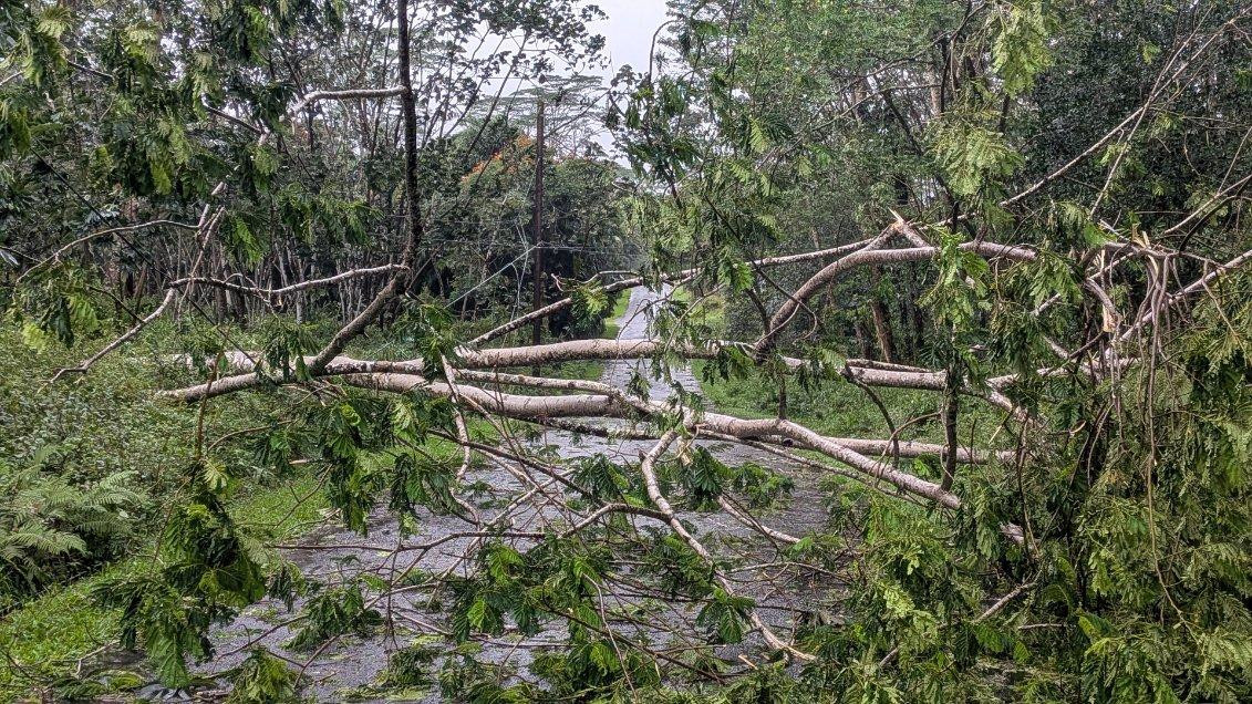 On Saturday, heavy rainfall and strong winds also caused road closures and property damage in Puna, Kona and Kohala. Peak wind gusts have occurred between 50 to 60 mph, with a few locations seeing gusts up to 70 mph.