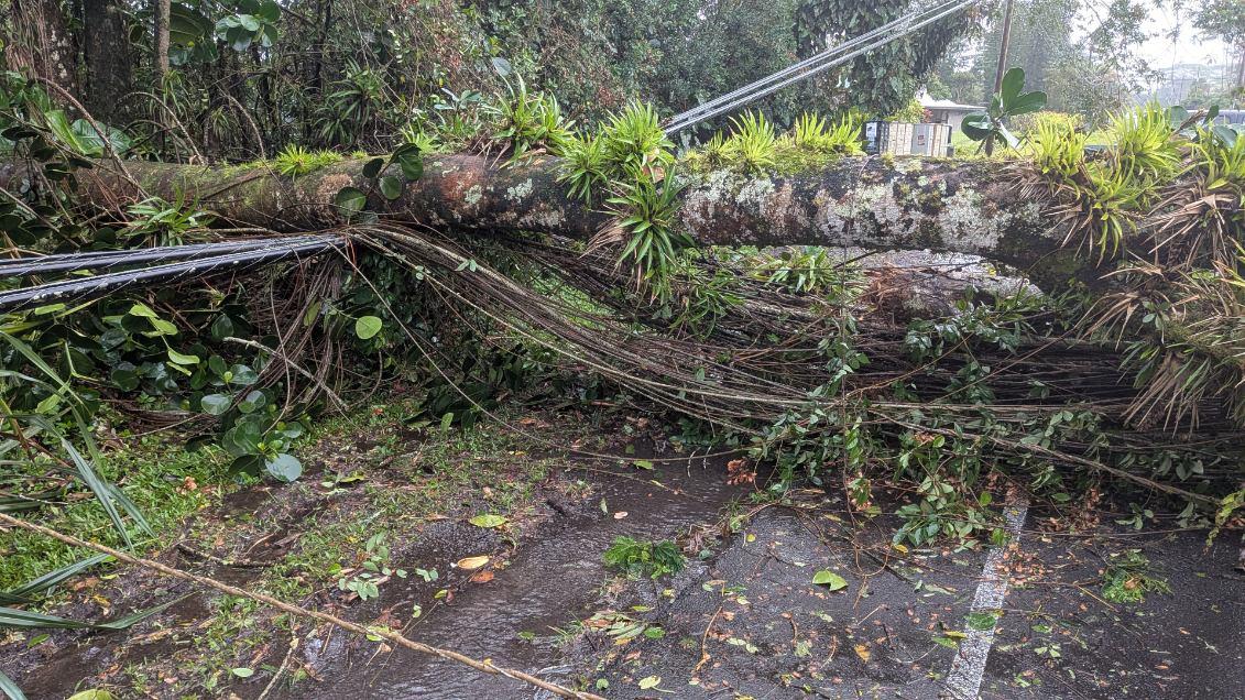 As of 7 a.m., officials say Highway 11 in Kaʻū remains closed from mile 52 near Kawa Flats to 66 in Waiohinu. Crews are working on clearing debris.