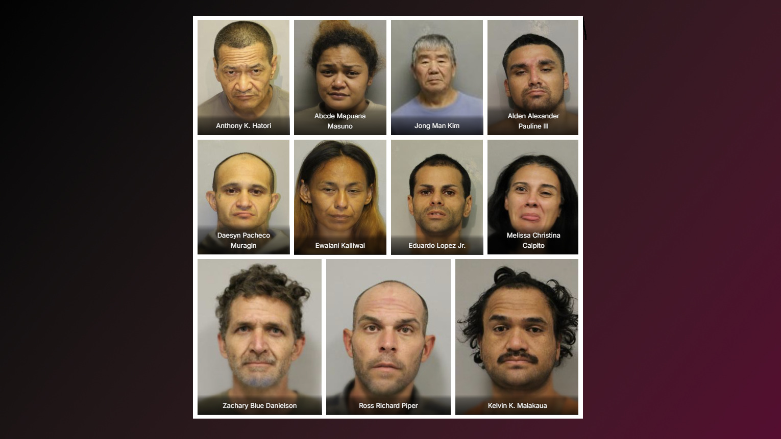 The Hawai‘i Police Department worked with various state and federal agencies to make the arrests, which led to the recovery of illegal narcotics, as well as a stolen vehicle.