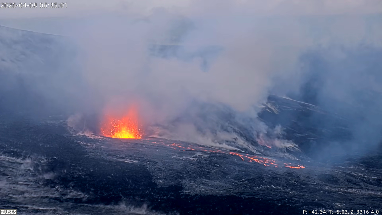 There was a recent pause in precursory lava activity at the summit, coinciding with a brief period of deflation that began Sunday morning, April 5. Deflation switched to inflation on Tuesday. The period of deflation likely delayed the start of episode 44.