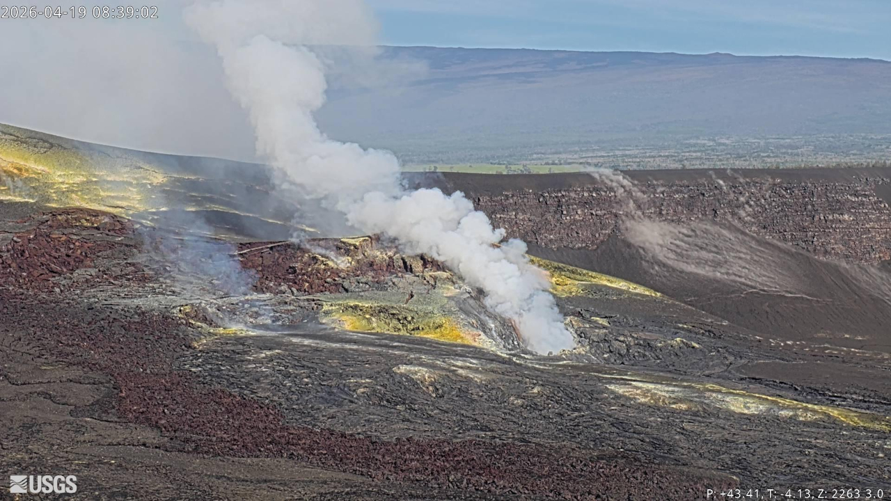 The USGS Hawaiian Volcano Observatory reports the summit region slowly deflated for much of Saturday, returning to inflation overnight. “Because of the brief deflationary excursion, the forecast models now suggest that lava fountaining episode 45 will occur slightly later, sometime between Tuesday, April 21, and Sunday, April 26,” Observatory scientists say.