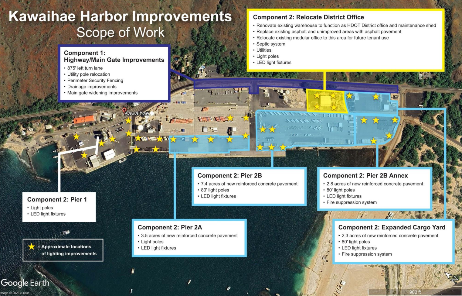 A new Draft Environmental Assessment published in the April 23 issue of The Environmental Notice details the various planned improvements. The project will “improve operating conditions and efficiencies within the cargo terminal, as well as reduce existing traffic congestion along Kawaihae Road associated with harbor operations”, officials say.